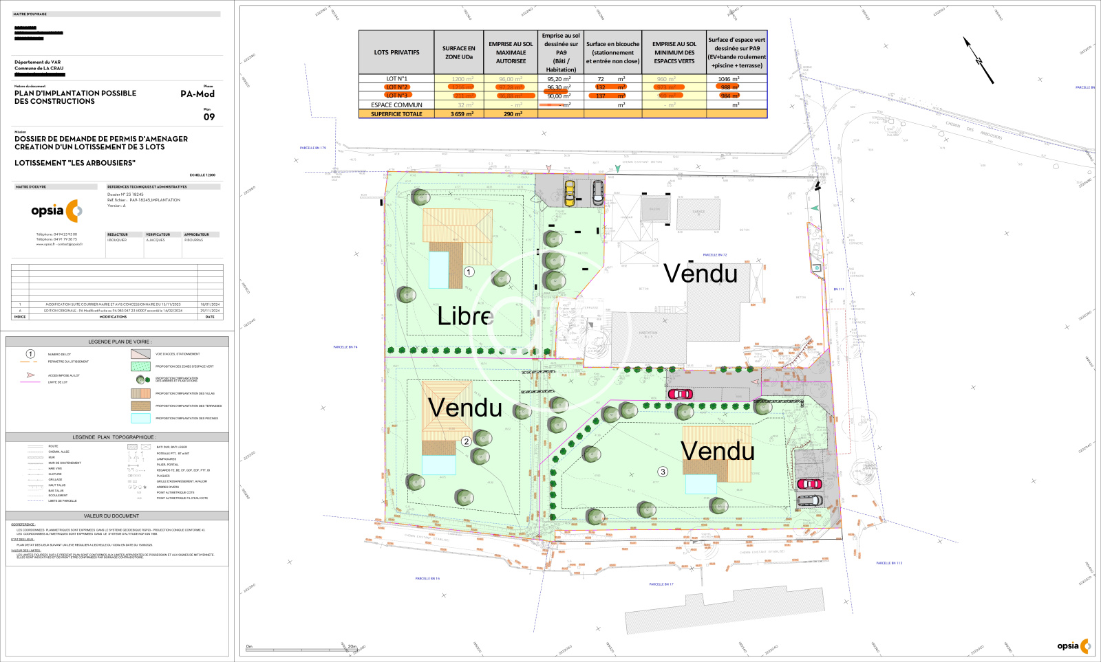 Possibilité de construction : emprise au sol 8% soit 96m2 / surface plancher autorisée 157m2 / terrain libre constructeur / terrain piscinable / quatre stationnements possibles