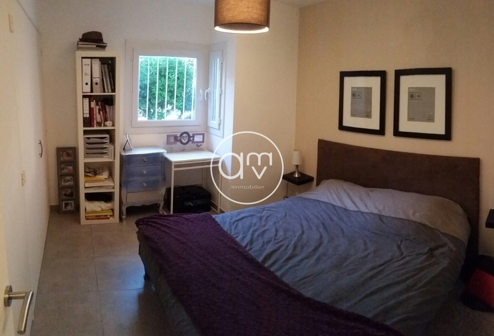 La partie privée de l'appartement comprend une salle d'eau refaite à neuf, ainsi qu'un WC fermé et une chambre qui accueille un lit double et deux grandes armoires de rangement.