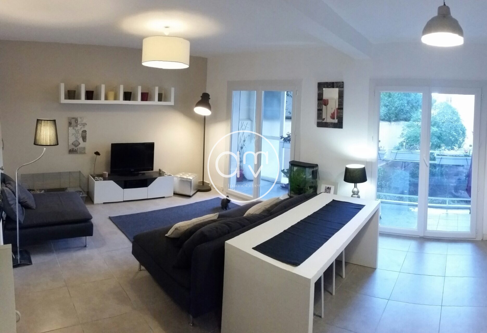 Au rez de chaussée de cet immeuble de standing se trouve le T2 traversant dont il est question. Une grande pièce de vie ( plus de 24 m2) avec la cuisine ouverte donne sur une terrasse exposée plein Sud, sans vis à vis (rare au Mourillon). Les deux baies vitrées de la pièce assurent une grande luminosité.